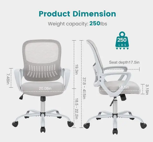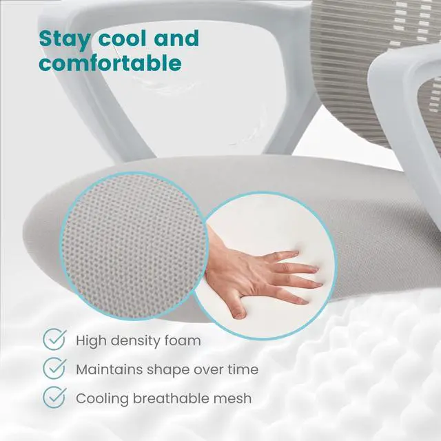 Thickened & Breathable Cushion: Enjoy all-day comfort with the supportive 3.94" thick cushion, sized at 20.08" wide to cradle your hips with ease. The quality desk chair mesh promotes airflow to keep you cool and focusedeven in warm weather. Plus the storage basket keeps your works essentials within arm's reach, giving you a cleaner desk to boost productivity.