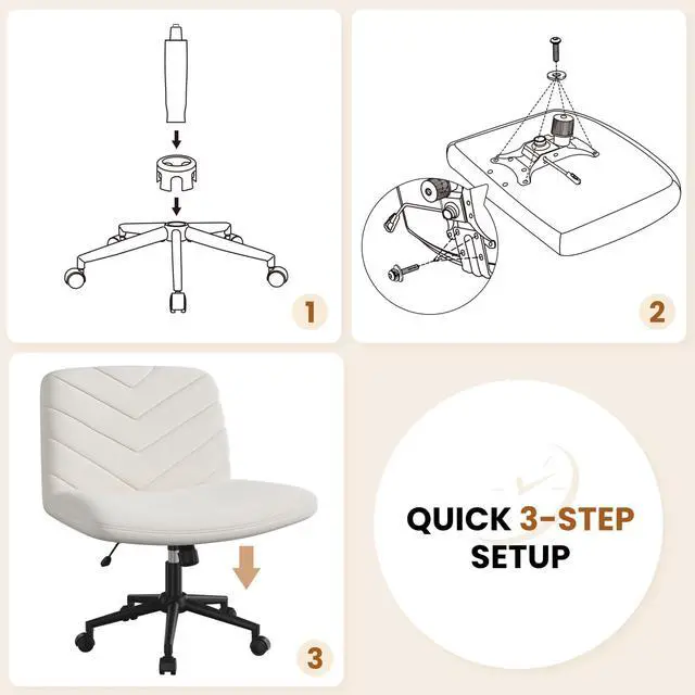 EXTRA-LARGE METAL BASE: This modern cross-legged office chair features a durable X-shaped iron base measuring 25 long with a 0.1 wall thickness, ensuring smooth swivel and support for various sitting positions, along with plastic foot pads to protect floors