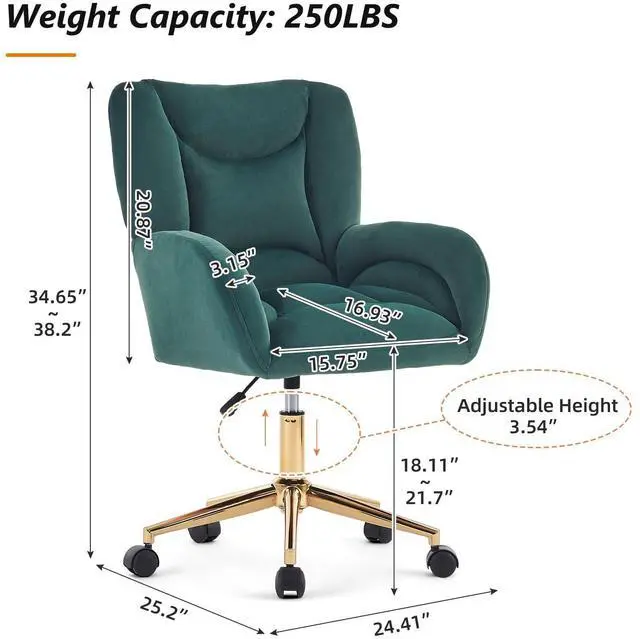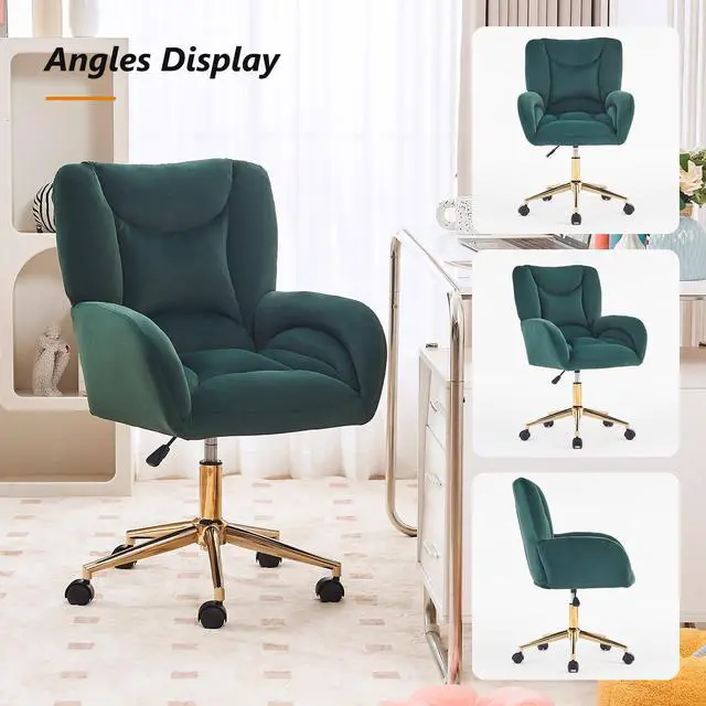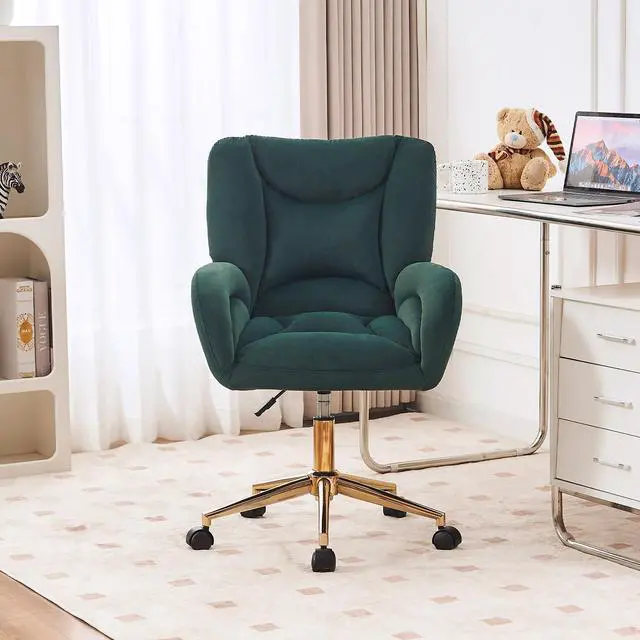 Velvet Teddy Fabric Home Office Chair Comfy Vanity Chairs Adjustable 360° Swivel Upholstered Computer Task Chair Living Room Chairs with Arm,Ivory (Velvet Fabric in Green)