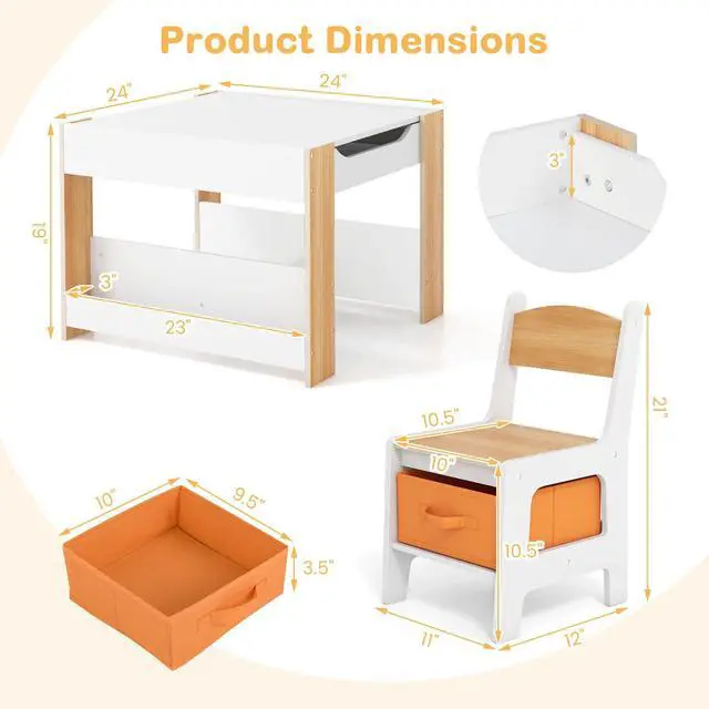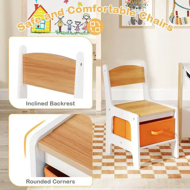 Safe Material & Structural Stability: The kids table and chair set is made of child-friendly MDF materials, ensuring safety and health. The kids table with storage is ASTM and CPSIA certified, providing you with peace of mind. Reinforced crossbars at the bottom of the table for kids are not easy to wobble, and the tight structure enhances the overall stability.