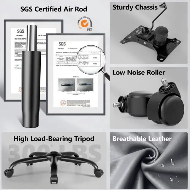 Premium PU Leather:Crafted with high-quality PU leather that's easy to clean and built to last. This office desk chair features waterproof material with a smooth, breathable surfaceperfect for your comfy office chair needs. Features high-density foam cushioning with natural leather grain for a premium executive look.