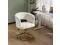 VINGLI Modern Curved Office & Vanity Desk Chair, Cute Upholstered Nail Chair with Wheels & 360° Swivel & Club & Tilting & Gold Base, for Bedroom, Living Room, Makeup, Velvet Chenille, White