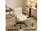VINGLI Padded White Desk Chair with/No Wheels,Dual-Base,Removable Armrests,Adjustable Comfy Rolling Swivel Computer Task Nail Tech Chair for Home Office,Sewing,Makeup Vanity,Teen,Linen Fabric