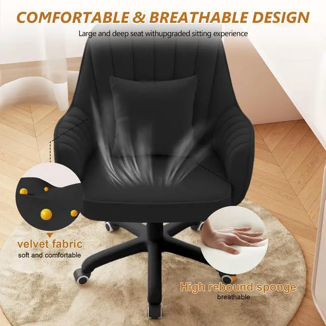 Stylish Modern Design for Versatile Use The elegant vertical channel tufting and plush velvet finish create a chic focal point for your space. This office chair is ideal for beauty enthusiasts, makeup artists, remote workers, and anyone seeking a stylish, comfortable seating solution. Beyond a makeup chair, it functions perfectly as a comfortable desk chair, guest chair, or accent chair, seamlessly complementing modern, minimalist, or glamorous decor styles.
