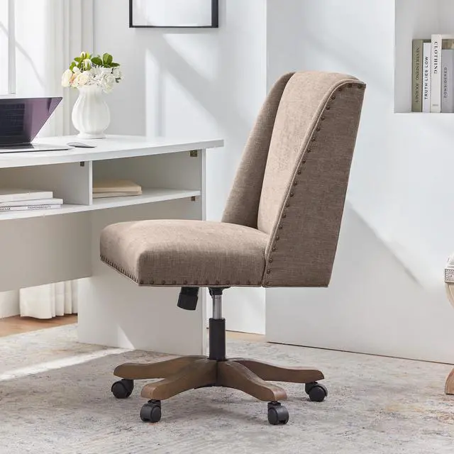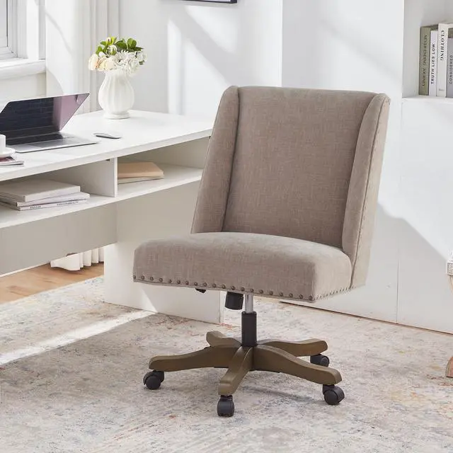 Upholstered Armless Office Chair with Wooden Legs, Modern Adjustable Home Office Desk Chair Computer Chair Swivel Chair for Home Office Study Studio (Brown)
