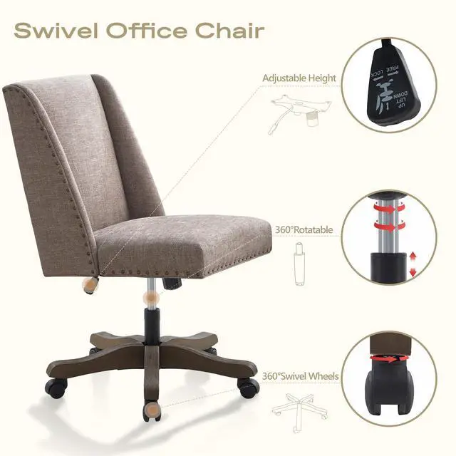 Comfortable Office Chair- - The white office chair is made of skin-friendly and resilient linen fabric, equipped with a double-layer sponge seat cushion, and the wide office chair backrest and independent lumbar support gently surround your body and support your lumbar area, making it ideal for long hours of sitting without fatigue.