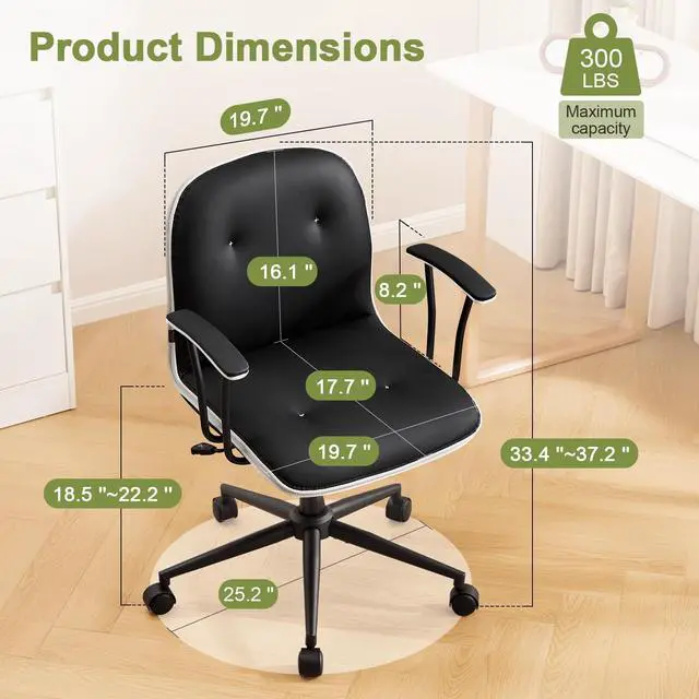 [Easy Assembly] - The package includes clear assembly instructions and videos to help you assemble this cute PU leather computer chair quickly and easily. The assembly process typically takes about 10-15 minutes.