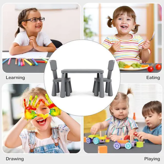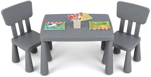 Costzon Kids Table and Chairs, 3 Piece Plastic Easy Clean Children Activity Desk for Reading, Drawing, Snack Time, Arts Crafts, Preschool, Kindergarten & Playroom, Toddler Table and Chair Set (Gray)