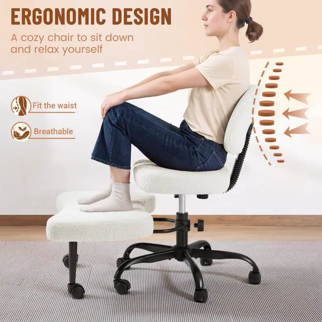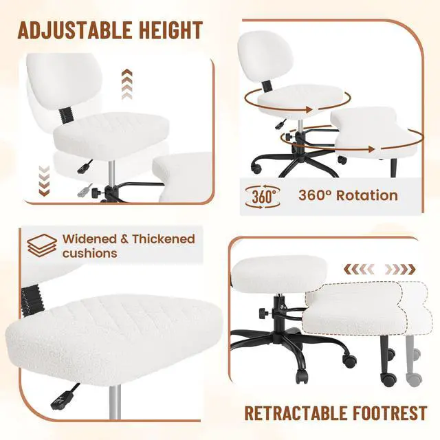 Homall Ergonomic Cross Legged Office Desk Chair with Wheels, 360° Swivel and Adjustable Height for Meditation and ADHD,Criss Cross Kneeling Chair with Lumbar Support (Teddy Fabric, White)