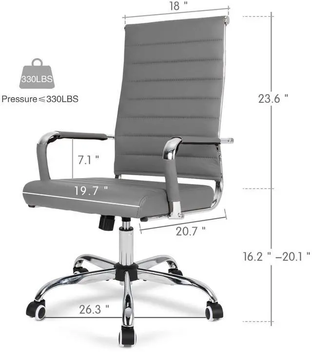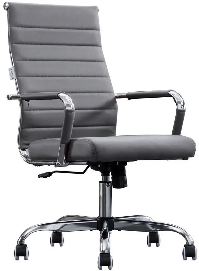 Home Office Chair Ribbed, Modern Leather Conference Room Chairs, Ergonomic Office Desk Chair, High Back Executive Computer Chair, Adjustable Swivel Chair with Arms (Grey)