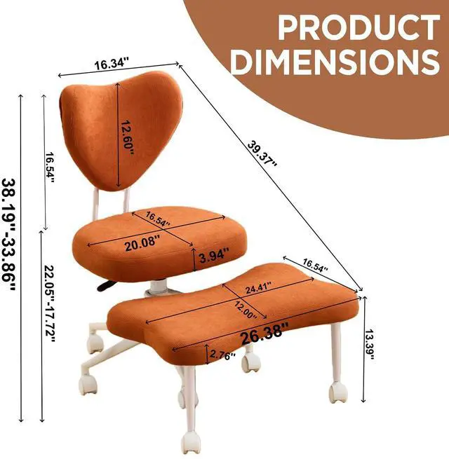 Orange Crossed Legged Office Chair, Criss Cross Office Chair with Adjustable Height, Lumbar Support & Wheels, Meditation Desk Chair for ADHD Home Office Use