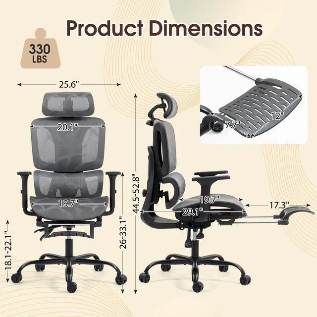 Ergonomic fit for all body types: Adjustable seat depth, lumbar support, 3D armrests, and height cater to different sizes and scenarios. Perfect as an ergonomic office chair with footrest or desk chair for home offices