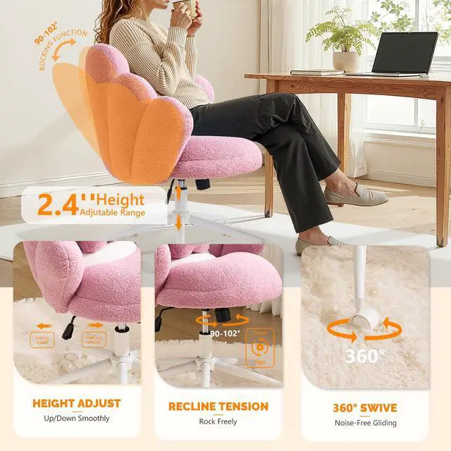 Adorable Petal Design: This charming swivel chair is inspired by the shape of a flower. Crafted with skin-friendly teddy velvet and a bold contrasting design of "petals" and "stamens", it offers exceptional comfort while adding a whimsical and vibrant accent to your room.