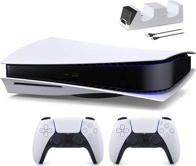 PlayStation 5 Disc Edition with Two DualSense Controllers and Mytrix Dual Controller Charger