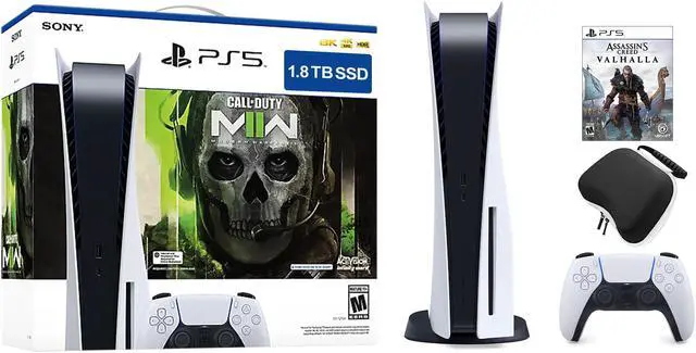 The Latest PlayStation 5 Disc Version 1.8TB Upgraded Ultra Fast SSD Console with Call of Duty Modern Warfare II full game voucher. Get the Call of Duty Modern Warfare II Bundle to drop into a globe-trotting single-player campaign, immersive Multiplayer combat, evolved Special Ops game mode and a massive calendar of free content post-launch. Unleashes new gaming possibilities that you never anticipated. Experience lightning fast loading with Mytrix Upgraded SSD with almost 2x storage space than standard model, deeper immersion with support for haptic feedback, adaptive triggers, 25D Audio, and an all-new generation of incredible PlayStation games. Also comes with Mytrix controller case for better gaming experience.