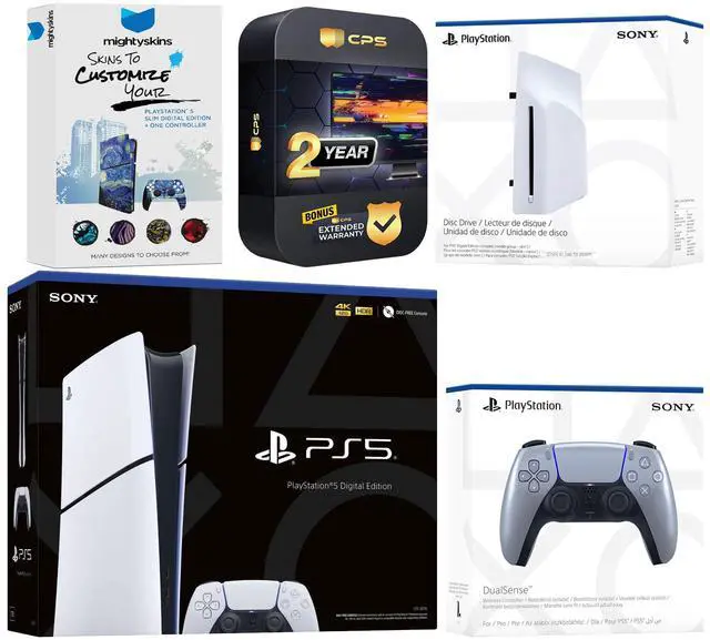 INCLUDED: Sony PlayStation 5 Disc, 2x Dualsense Controllers, HDMI cable, AC power cord, MightySkins code, CPS 2 Year Protection Plan