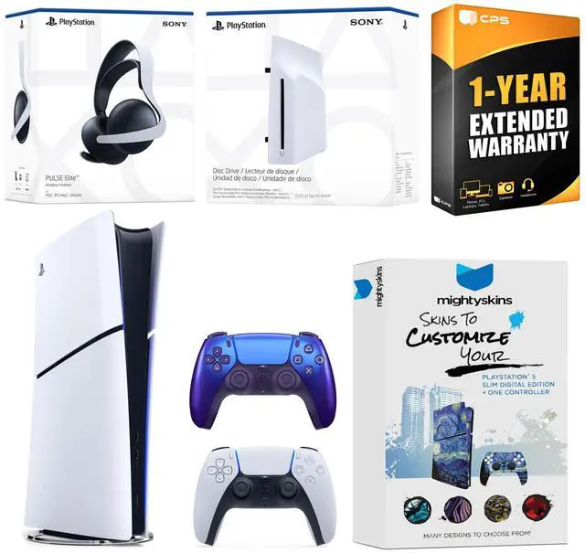 • MightySkinsPlayStation 5 Slim Digital Skin + Controller Skin Voucher to customize your console and one controller. Choose from many different designs to give your set up a custom look while keeping it protected.