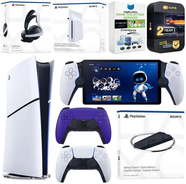 Sony PlayStation 5 Slim Digital Bundle with Disc Drive, Stand, Extra Controller, Pulse Elite Headset, PlayStation Portal, MightySkins Game Collection Services and 2 Year Extended Warranty - Galactic