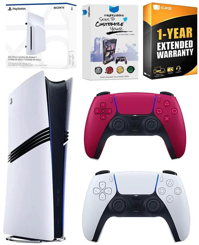 INCLUDED: Sony PlayStation 5 Pro Digital, 2x Controllers, Disc Drive Attachment, HDMI cable, AC power cord, MightySkins code and 1 Year CPS Extended Warranty