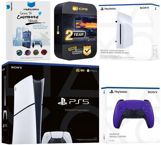 INCLUDED: Sony PlayStation 5 Disc, 2x Dualsense Controllers, HDMI cable, AC power cord, MightySkins code, CPS 2 Year Protection Plan