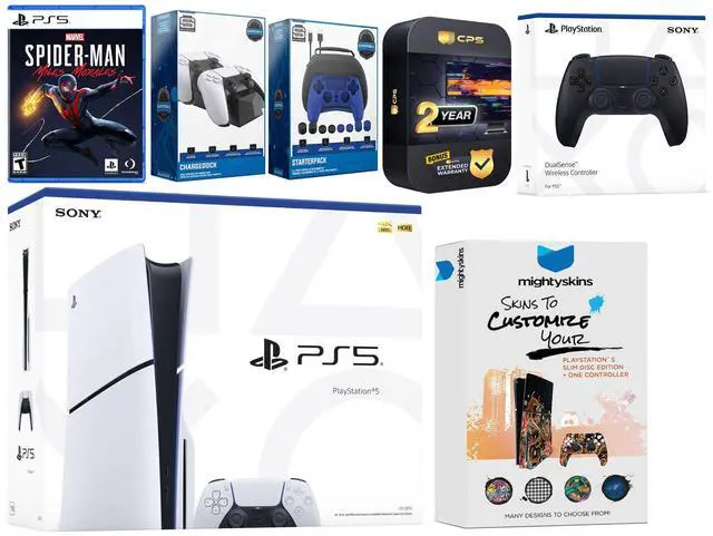 Spider-Man: Miles Morales Physical Game, Pro Gamer Starter Pack 11-Piece Accessory Kit, Dual Controller Charge Dock, MightySkins Console + Controller Decal Code, HDMI cable, AC power cord, USB cable, and 2 Year Extended CPS Warranty