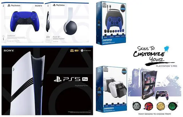 Sony PlayStation 5 Pro, 2x Controllers, Sony PULSE 3D Headset, Pro Gamer Starter Pack, Controller Charge Dock, MightySkins Code, and 2 Year CPS Extended Warranty