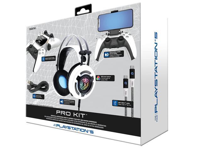 Bionik Pro Kit For PlayStation 5: Powerful 50mm Gaming Headset with RGB Color, Controller Charge Base, Phone Holder, Lynx Cable & USB Cable