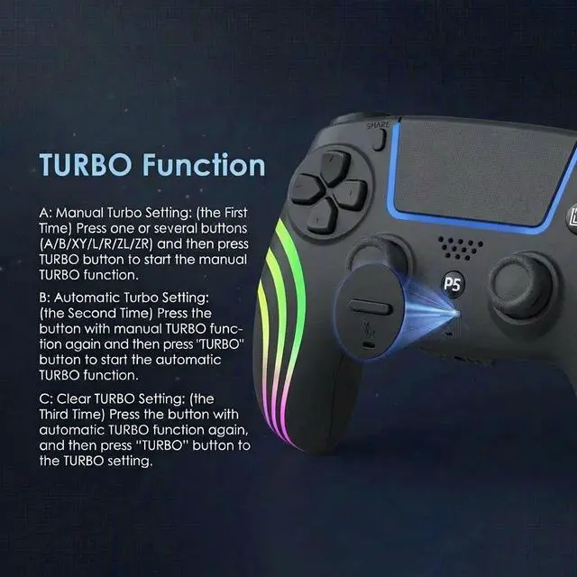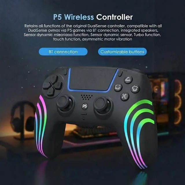TOPWOLF Wireless RGB Controller for PS5, PS5 Slim, PS5 Pro and PC Hall Effect Anti Drift Joysticks, Programmable Turbo Buttons, Dual Vibration, 6-Axis Motion Sensor Gamepad black