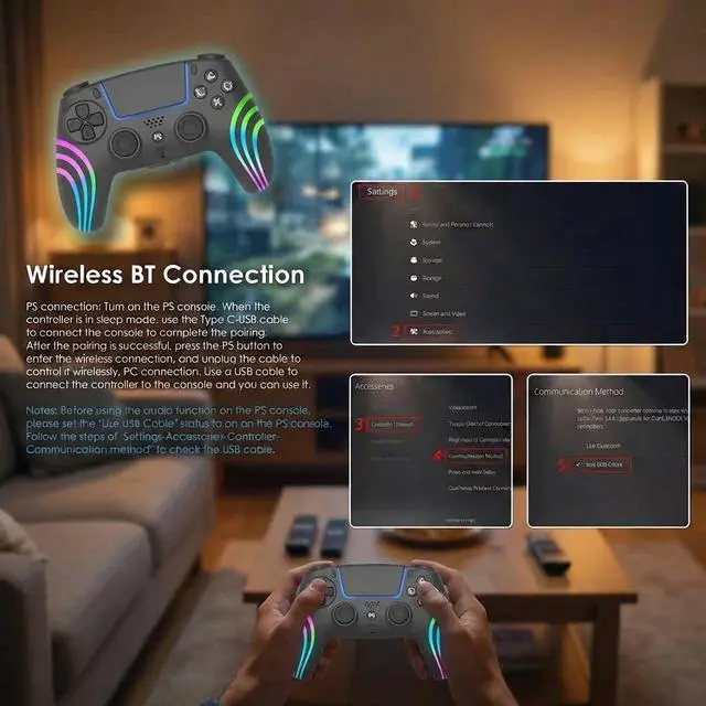 Fully compatible with PS5 / PS5 Slim / PS5 Pro and PC. The touchpad perfectly mirrors native DualSense functionality, while the 6-axis gyro sensor delivers precise motion control. Dual vibration motors immerse you in every crash, gunshot, and explosion. Built-in 3.5mm audio jack supports wired headsets for in-game chat.