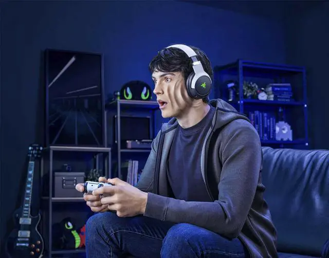 Low-latency Bluetooth with Quick Connect Toggle Gaming Mode via the Razer Audio App to reduce latency for smoother mobile gameplay. Utilize its Quick Connect feature to switch between previously connected devices with just one tap. Powered by Razer Chroma RGB Personalize the headsets lighting via the Razer Chroma RGB app on Android/iOS, and watch it work seamlessly with over 150 games and 500 devices across more than 50 partners. Multi-Platform Connectivity Game how you want using the compact USB-C dongle for a seamless transition between PlayStation, PC, Mac, Android, and Nintendo Switch.