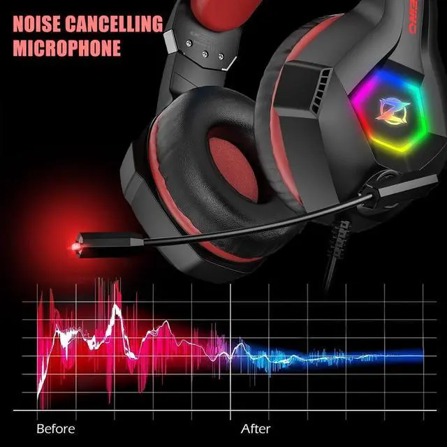 Our gaming headset is equipped with upgraded noise cancellng onmi-directional microphone, which can transmits clean and clearer communication and effectively reduce background noise. Easily to switch Mic mute ON/OFF.