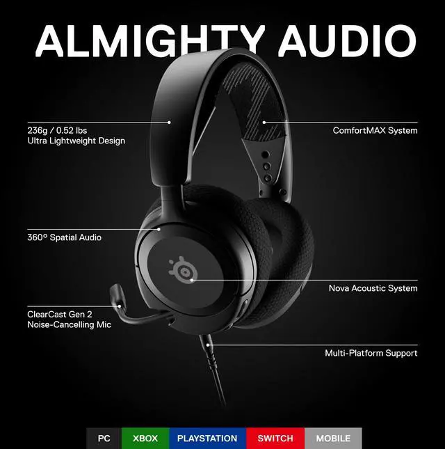 ![]() Arctis Nova 1 - Black | ![]() Arctis Nova 1 - White | ![]() Arctis Nova 3 | ![]() Arctis Nova 7 | ![]() Arctis Nova Pro Wired | ![]() Arctis Nova Pro Wireless | ![]() Arctis 9 |