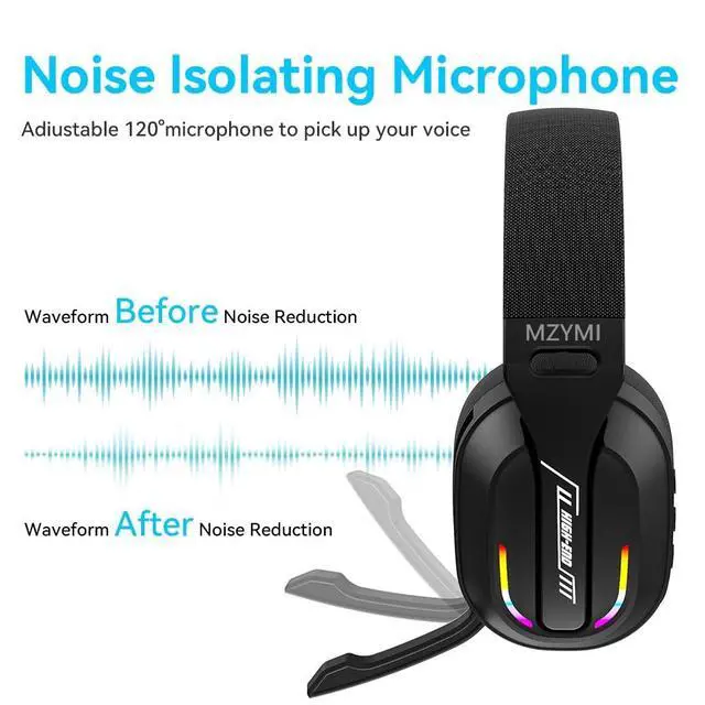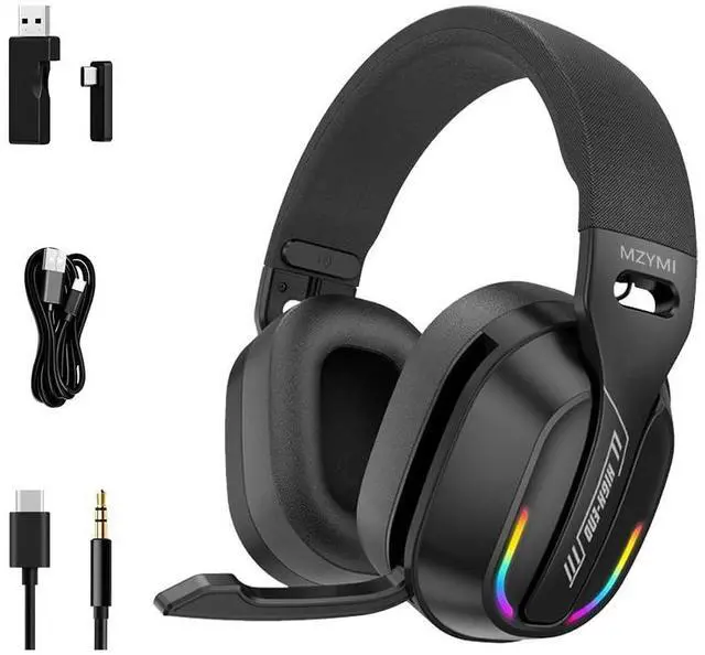 2.4GH z Wireless Gaming Headset for PC, PS5, PS4, Switch - Bluetooth 5.4, 20H Battery, with ENC Noise Canceling Microphone, Cool Lighting, 40mm Drivers, for Wired Mode Xbox Series -Black