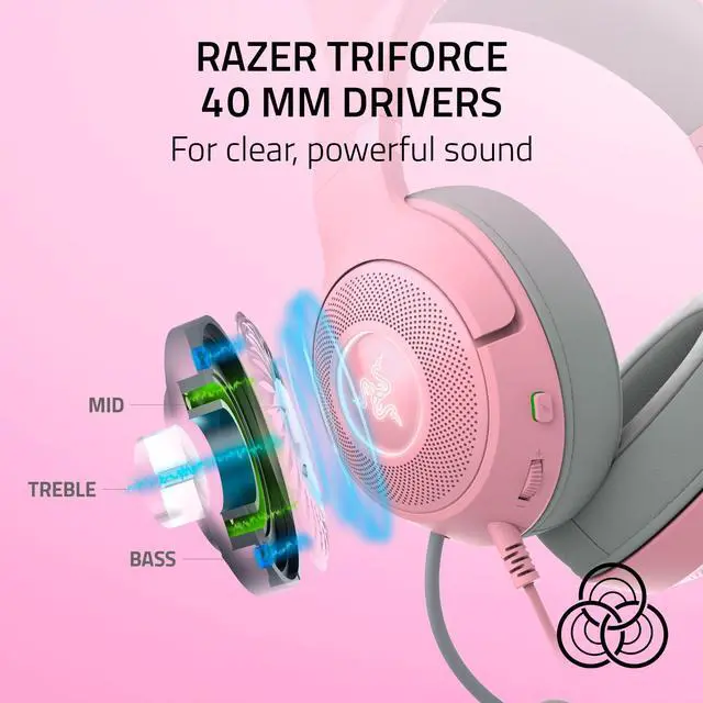 Create your cutest stream persona in killer kitty style with the new Razer Kraken Kitty V2. Stand out and turn heads with unique kitty ears powered by Razer Chroma RGB, as you put on a show with stream reactive lighting and a crystal-clear mic