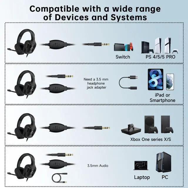 Strong CompatibilityPC gaming headset with mic compatible with PC, Mac, Windows, Laptop, PS5, PS5pro, PS4, Xbox series X, Xbox series S, Xbox One,Smartphones,Steam Deck,Rog Ally,Tablet and more.
