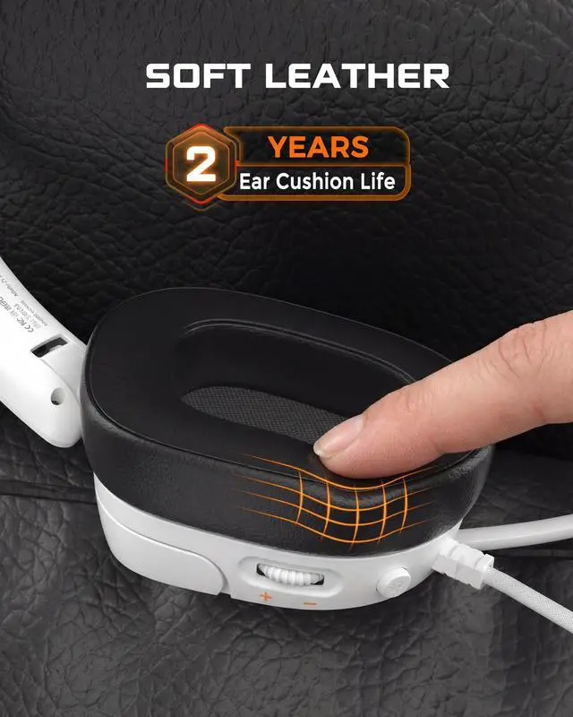 Design Fit for Long Wear: Our over-ear gaming headsets earcups last over 2 yearssurpassing typical durabilitywith full ear coverage, memory foam padding, and breathable leather, ensuring all-day comfort free from pressure or sweat.