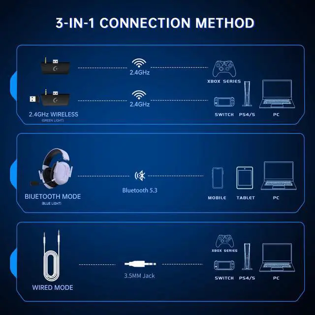 & - : Captain 560 wireless gaming headset is equipped with low-latency, lossless 2.4GHz wireless, the Bluetooth 5.3 mode, and 3.5mm wired connection mode, which can be wirelessly connected to xbox controller (Please Note: The Captain 560 Transmitter Only Supports Official Controllers instead of the 3rd parties) as well as seamless compatibility with PC, PS5/4, Laptops, Mac and Nintendo Switch