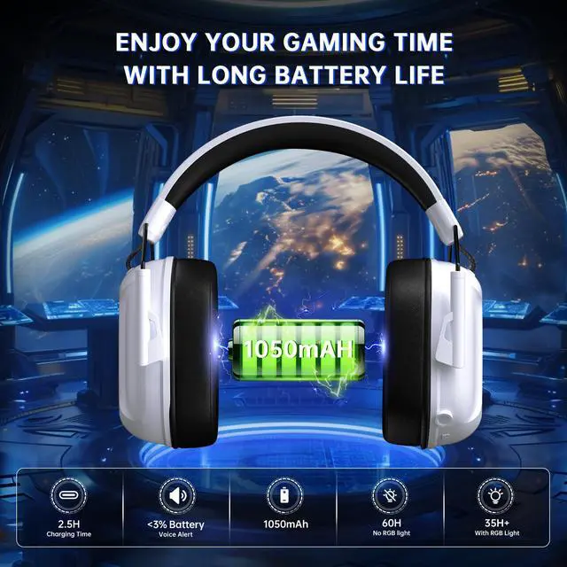 - & : Seamlessly manage your gaming experience with the easy-to-reach buttons on this xbox headset. Fine-tune the volume, mute the mic, or adjust other settings directly from the headset to make your gaming experience smoother and easier. This PS5 headset provides 60 hours (With The Lights Off) of continuous gaming time and can be fully charged in just 2.5 hours via the Type-C port