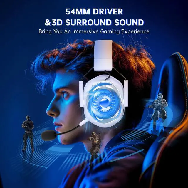 Wireless Gaming Headset for Xbox Series X|S, Xbox One, PC, PS5/4, Mac, Mobile, Switch, 3D Surround Sound, Bluetooth 5.3, 60H Battery, Gaming Headphones with Detachable Noise Canceling Mic-White