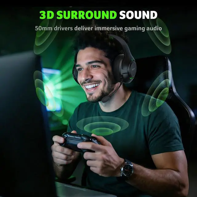 The headset features a noise-canceling microphone designed specifically for gaming. It focuses on your voice and effectively blocks out background noises like fans or clicking keyboards.