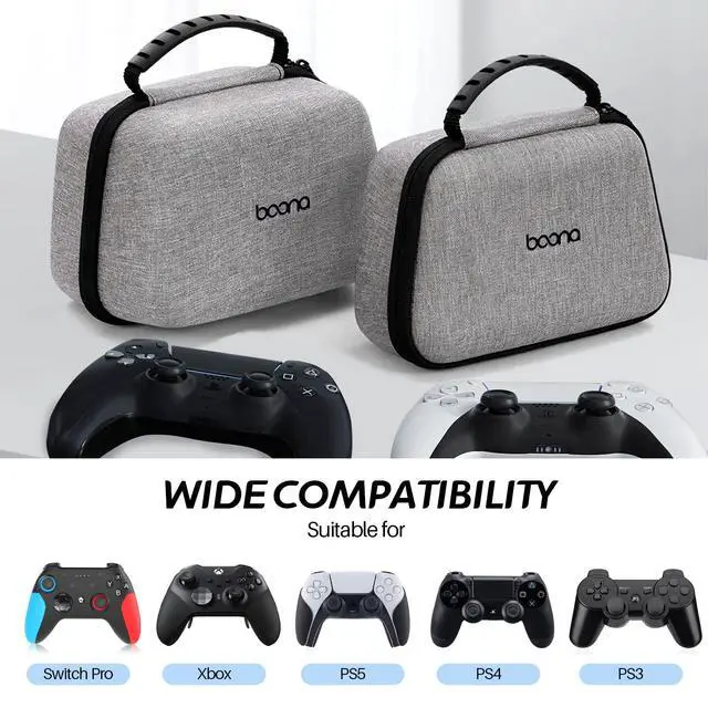 PS5 PS4 Switch Pro Controller Case, Game Controller Carrying Travel Bag Compatible with PS 5, PS 4, X Box, Switch Pro and Other Controllers, Protective Hard Storage Case for 2 Controllers (Grey)
