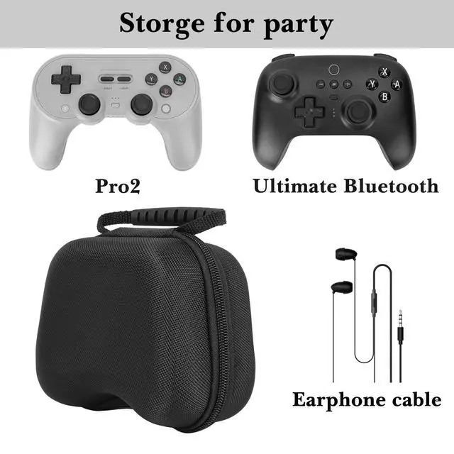Hard Travel Controller Case Compatible with 8BitDo Pro 2/Ultimate Bluetooth/2.4G Dual Sense Wireless Controller Gaming Accessories Carrying Case, Game Protective Storage Bag (Black)