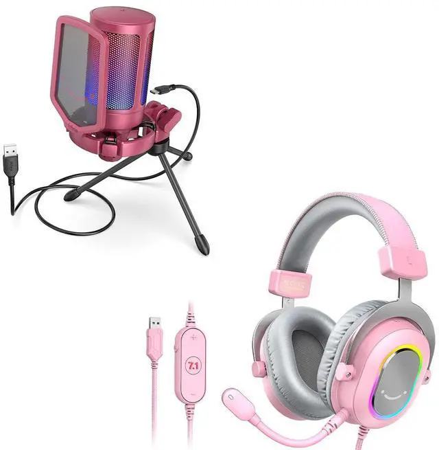FIFINE AmpliGame PC Gaming Streaming USB Microphone and PC Gaming Headset,Condenser RGB Mic with Pop Filter,Shock Mount,Computer RGB Over-Ear Headphones with 7.1 Surround Sound for PS4/PS5(A6R+H6P)