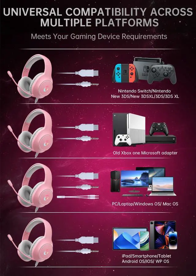• 7.1 Professional Surround Sound Speakers: Gaming headset feature a 50mm dynamic driver and a PET material large diaphragm. Pink Gaming headset effectively reproduce game audio, providing an immersive gaming experience where every footstep and gunshot can be captured from all directions. Gaming headset for xbox include a scroll volume adjuster and a one-click mute function for easy volume control. With 6.9-foot braided cables, ensuring a stable power supply and preventing cable tangling