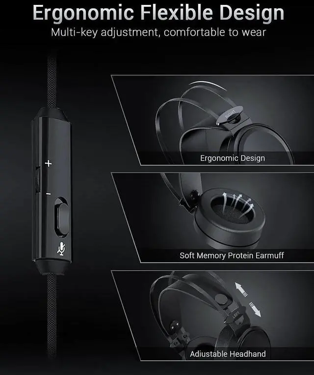 Wired Gaming Headsets for PS4, Xbox one Stereo Headset Wired PC Gaming Headphones with Noise Canceling Mic, Over Ear Gaming Headphones for PC/MAC/PS4/PS5/Switch/Xbox one (Adapter Not Included)