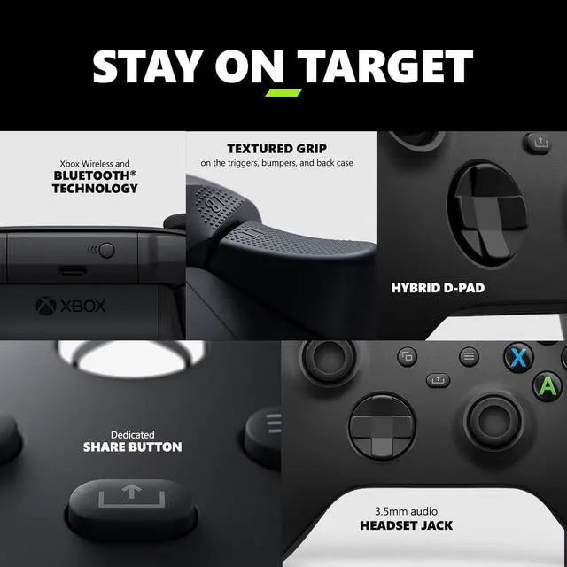 STAY ON TARGET: New hybrid D-pad and textured grip on the triggers, bumpers, and back-case.