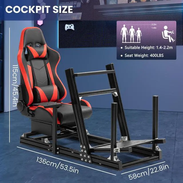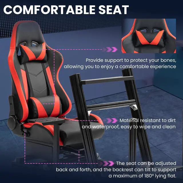Ergonomic SeatWith double slides and breathable material, The racing simulator cockpit rig is easy to adjust and stable
