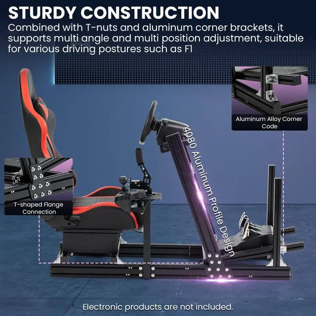 Firm and Stable Using aerospace-grade 40×80mm solid aluminum profiles, so stable a racing simulator cockpit