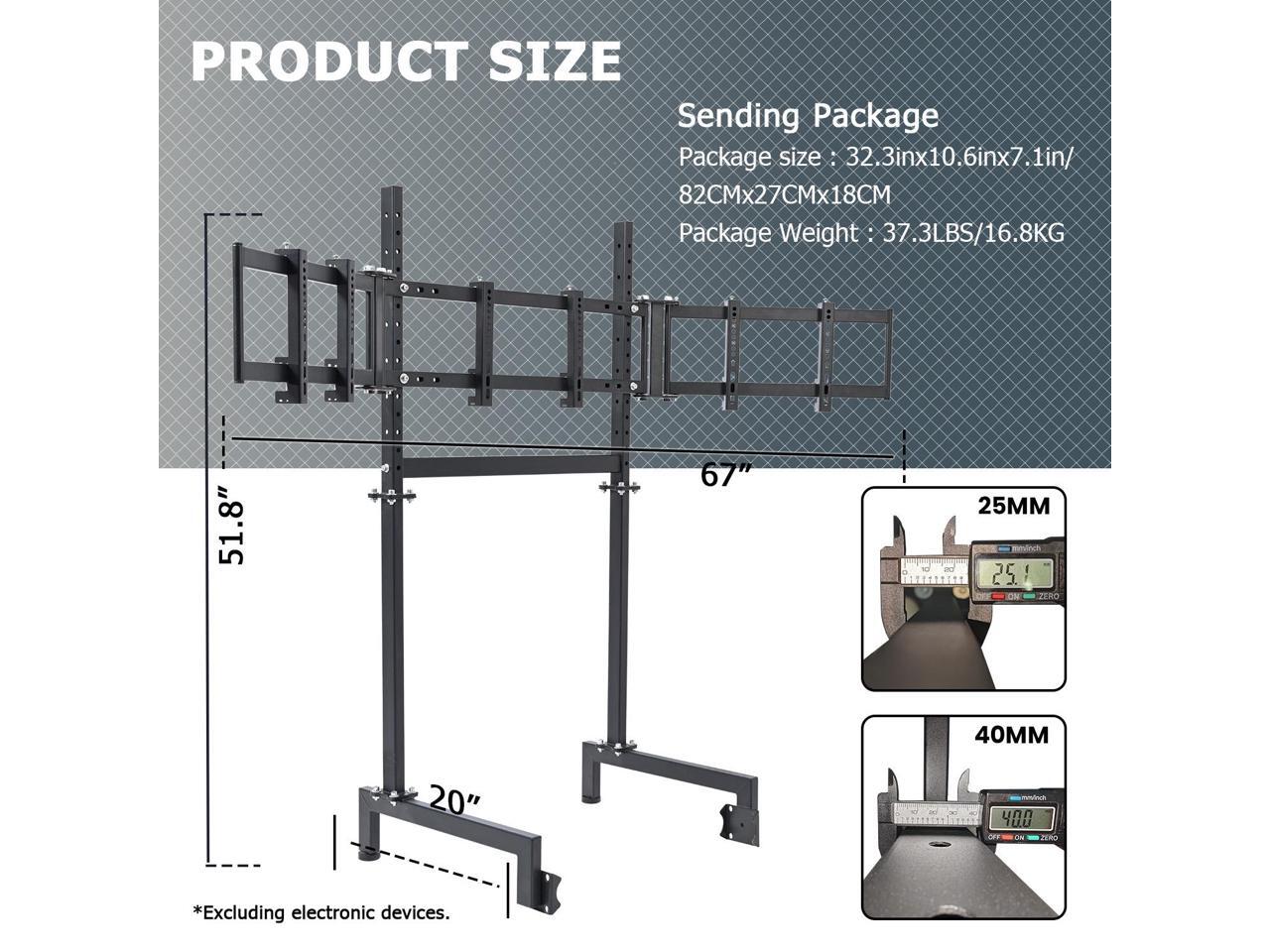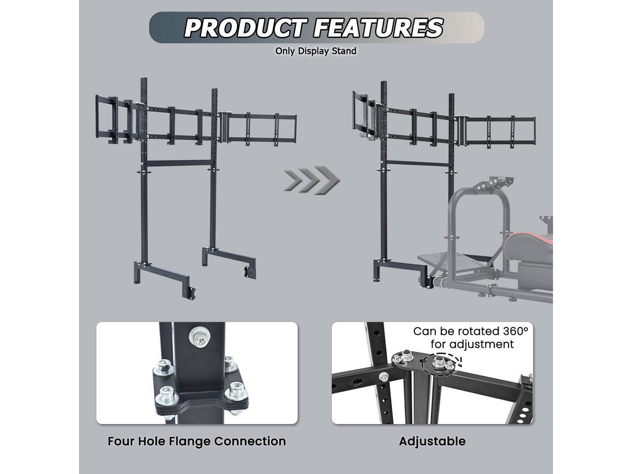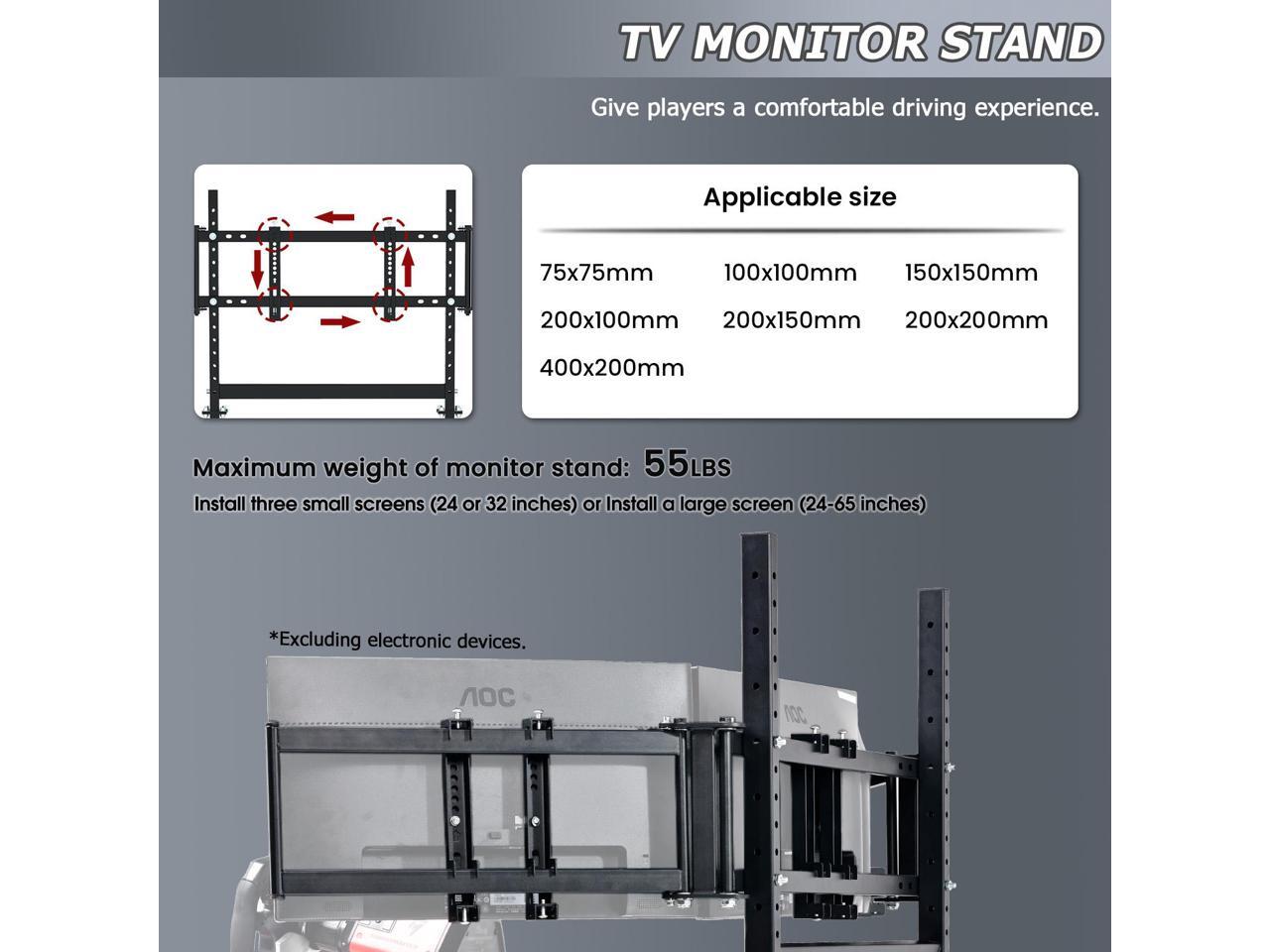 - Versatile Triple Monitor Stand:Triple monitor stand for racing simulators, supports 3 smaller screens (27-32 inches) or 1 large screen (27-65inches).It is important to note that only our round tube racing cockpits will fit