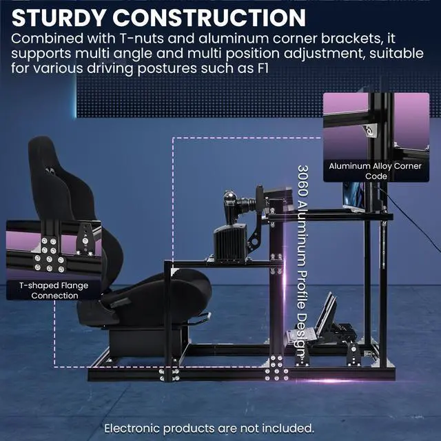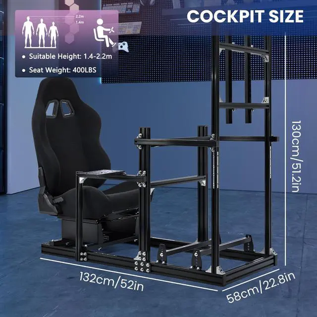 More Stable StructureThe cockpit of this racing simulator is made of solid aluminum profile, with increased support bars make the entire simulation racing device more stable, support more powerful force feedback, can bring you a better gaming experience
